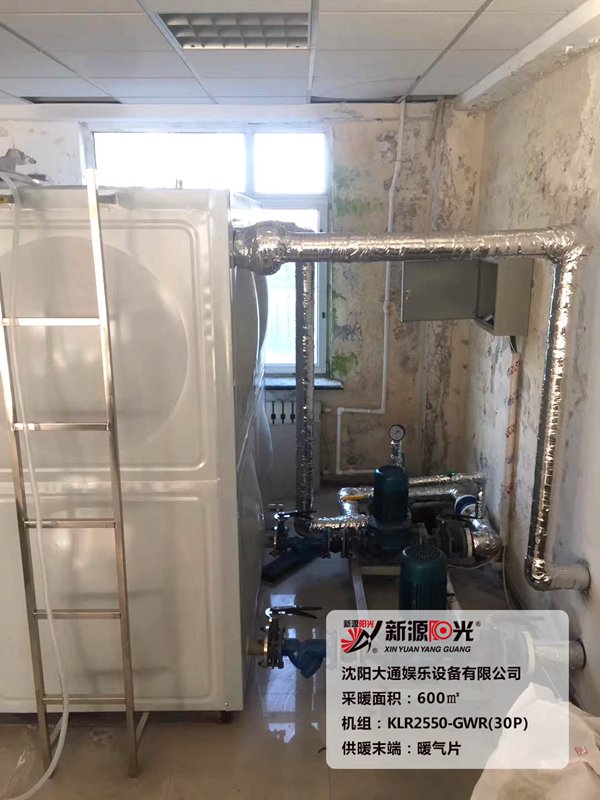 供暖面積:600㎡ 機(jī)組:新源陽(yáng)光30P空氣能熱泵機(jī)組 采暖末端:暖氣片