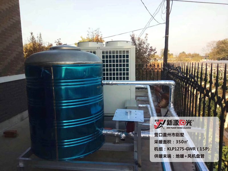 供暖面積:350㎡ 機(jī)組:新源陽(yáng)光15P空氣能熱泵機(jī)組 采暖末端:地暖+風(fēng)盤